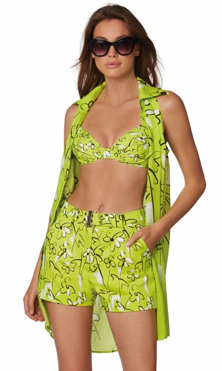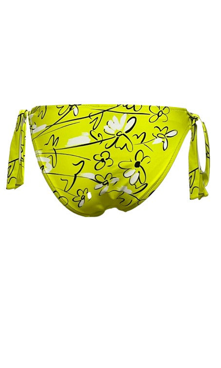 Roidal Gara Green Tie Side Bikini. Featuring an underwired top for support and a flattering tie side design, this bikini showcases an abstract floral print on a lovely pistachio green. Perfect for making a statement at the beach or pool, all while feeling comfortable and confident. The straps are adjustable and the back fastens with a clasp. The briefs are a tie side and low rise. Wear with the matching beachwear shorts and beach shirt from Roidal for the complete holiday look. For more information on international sizing for Roidal swimwear then please visit our Roidal Swimwear size guide.