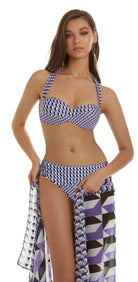Roidal Anaia Pareo in a geometric purle lilac and white print. This pretty pareo measuring 1.18 by 1.75m, and featuring an optical pattern in purple, white and black. Team it with matching Roidal Tarina or Dilan swimsuits or transform it into a chic skirt, dress, scarf, or shawl for a complete look.