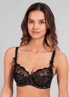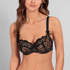 Empreinte Gaby low neck bra in black, with beautiful lace embroidered cups. Wear with matching Empreinte Gaby black briefs for a complete set.