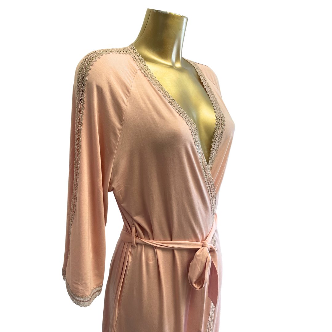 Vanilla Night & Day Pale Pink Short Robe in pretty rose pink robe by Oh Zuza Night & Day. Pretty pale pink short robe with delicate lace trims. Ultra feminine and beautiful. The matching pale pink chemise makes the perfect luxurious set. Vanilla Night & Day have merged with Oh Zuza nightwear creating the brand Oh Zuza Night & Day range of stylish nightwear.